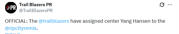 篮球-开拓者官宣下放杨瀚森:今日再为混音出战蓝队 上一场22分7板3助
